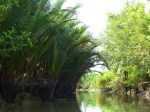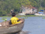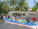 On prend donc rendez vous avec cette chère dame pour le lendemain matin à 5H30. Devant les yeux apeurés de Marion elle nous garantit que c’est elle qui conduira et nous montre l’état de son bateau. Ah ah la belle affaire ! Le lendemain il ne s’agit plus du même bateau et Madame THUI est remplacé par Monsieur je-ne-parle-pas-un-mot-d-anglais.. Bon. On monte quand même. On est pas les seuls à être sur un bateau aussi petit et on part dans la même direction que tous les autres donc ça devrait le faire. Au premier marché flottant on décide de prendre un petit dej composé de pastèque et d’ananas, bien évidemment coupés avec un couteau lavé dans l’eau du Mékong ! On aime !!!!!! Mis à part nos ventres qui ne s’en remettront peut être jamais vraiment, la balade fut fort sympathique et les paysages vraiment chouettes.